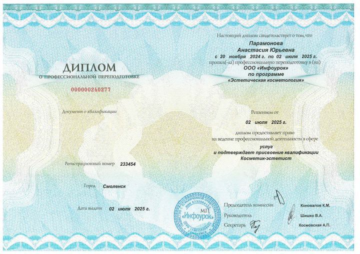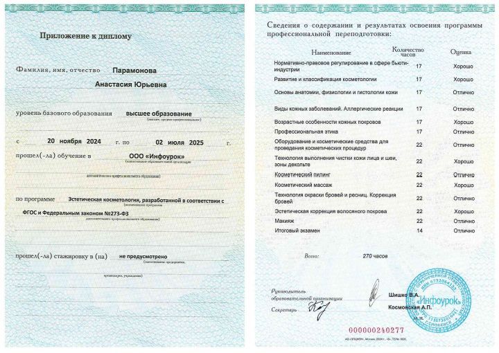 Преподаватель курсов по направлениям "Массаж лица", "Депиляция", "Косметология", "SPA для тела", "Аппаратная косметология"